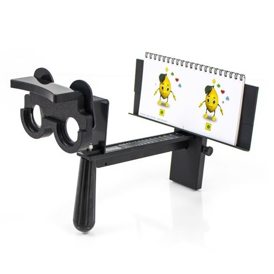 Bernelloskopu przeznaczony do trzymania w ręku. Dzięki podstawce na testy ze specjalnym uchwytem pacjent może łatwo przysuwać i odsuwać tabliczki testowe od oczu.