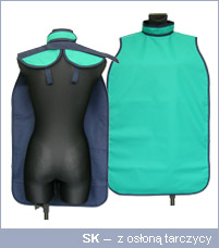 Typ SK (z ochroną tarczycy) - do 40% lżejszy od standardowych fartuchów ochronnych. Zabezpiecza przód, barki i tarczycę użytkownika. Wieszak w zestawie do każdego fartucha.