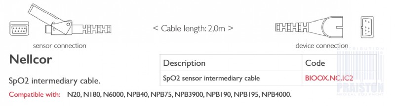 N-100, N-200, N-1000 and N-2000 Preamp cable; MDE Escort E100, Drager VitAlert 3200,