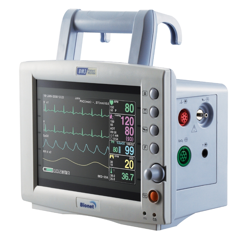 • monitorowanie EKG, SpO2, NIBP, Respiracja, Temperatura, ST, PVC