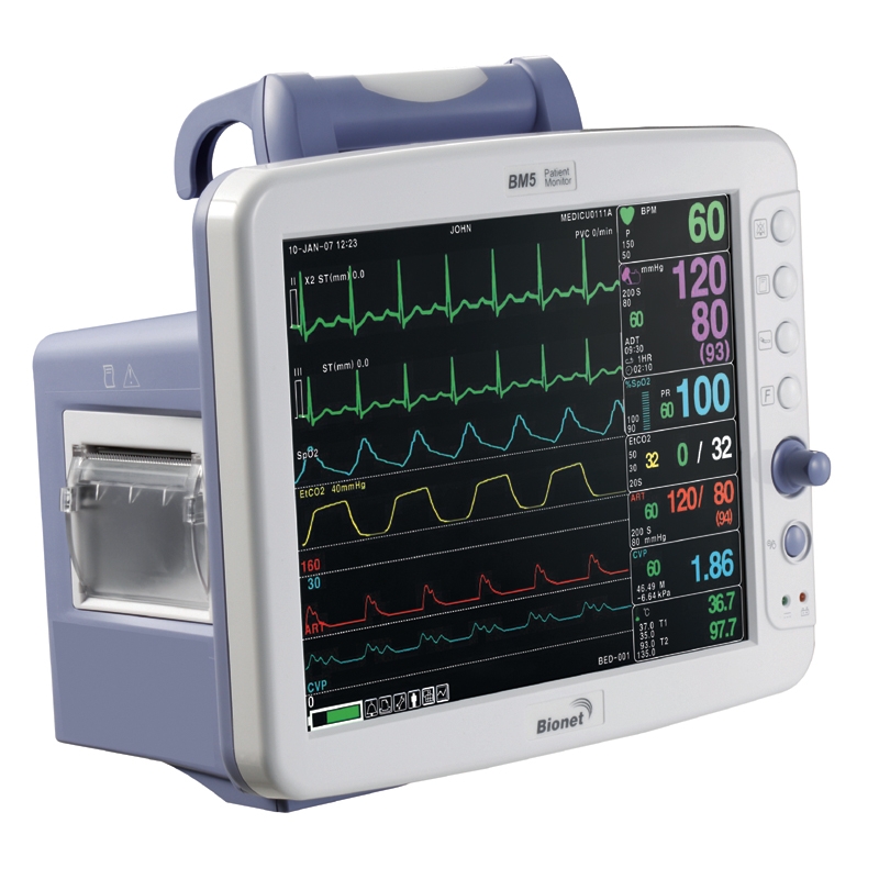 • monitorowanie EKG , SpO2, NIBP (Suntech), Respiracja, 2IBP, 2 Temperatury, EtCO2 (Mainstream/Sidestream), ST, PVC