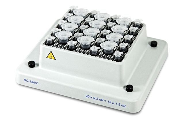 Blok SC-18/02 na mikroprobówki 20 x 0,2 mL + 12 x 1,5 mL do termomiksera TS-100
