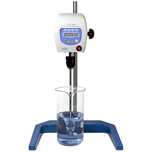 Mieszadło mechaniczne MM-1000 jest zaprojektowane do mieszania płynów o małej i średniej lepkości w objętości do 20 litrów. Ciche i niezawodne mieszadło umożliwia pracę ciągłą przez 7 dni. Urządzenie ma możliwość wykonywania trzech typów ruchu: obrotowego, postępowo zwrotnego, wibracyjnego. Mikroprocesorowa kontrola szybkości, czasu i innych parametrów ruchu umożliwia wykorzystanie każdego z typów ruchu oddzielnie lub łączenie ich w cykle.
