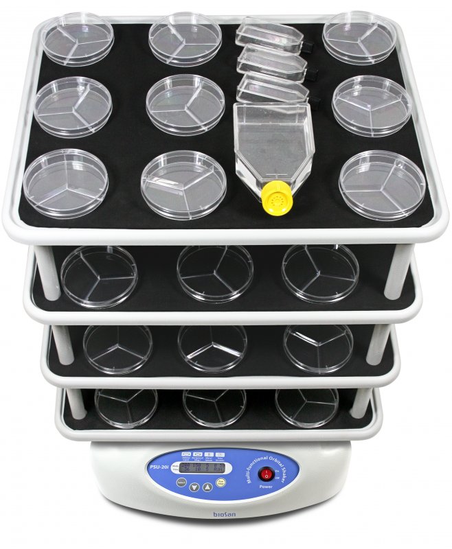 Wytrząsarka PSU-20i jest zaprojektowana do aplikacji zarówno w małych wyspecjalizowanych laboratoriach, jak również dużych laboratoriach wielodyscyplinarnych: wybór różnych wymiennych platform zapewnia możliwość wykonywania różnych procedur i technik. Specjalną uwagę należy zwrócić na wielopoziomową platformę umożliwiającą umieszczenie dużej liczby różnych mikropłytek, płytek Petriego, worków do hodowli i innych niskich pojemników.