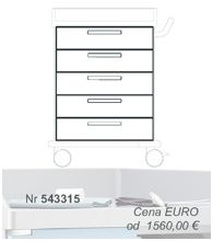 Wózek wykonany z dwuściennej stali lakierowanej proszkowo, blat z tworzywa ABS, system zatrzaskowy MEGAclick, liczba szuflad: 5