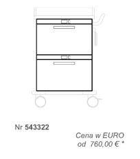 Wózek wykonany z dwuściennej stali lakierowanej proszkowo, blat z tworzywa ABS, liczba szuflad: 2