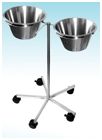 Stojak podwójny wykonany ze stali kwasoodpornej z miską. Nogi z pięcioma kółkami, dwa kółka z hamulcem. Miska o średnicy 300 mm i głębokości 100 mm. Całkowita wysokość stojaka 800 mm.