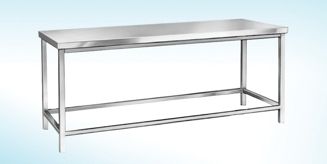 Stół ze stali kwasoodpornej. Wzmocniona podstawa z profili 40x40 mm. Blat pełny grubości 38 mm. Wysokość 890 mm, szerokość od 600 do 3000 mm, głebokość 600,700 lub 800 mm.Cena stołu zależy od jego gabarytów.