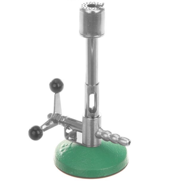 Palnik Bunsena z zaworem odcinającym na gaz ziemny z regulacją powietrza i świeczką. Maksymalna temperatura 1300 °C.