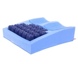 Poduszka pozycjonująca składająca się z 3 elementów z jednym zaworem. Rozwiązanie przeznaczone do zapobiegania odleżyn u pacjentów, którzy muszą utrzymywać pozycję siedzącą przez dłuższy czas. Odpowiednia do: 1-2-3 st. odleżyn wg skali EPUAP. Max. waga pacjenta 100 kg.