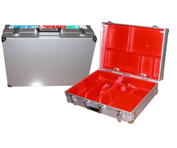 Walizka aluminiowa dwukomorowa na sprzęt medyczny 52x36x17 cm.