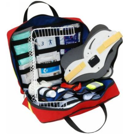 Opatrunki znajdujące się w torbie są przejrzyście rozmieszczone, z łatwym dostępem do niezależnych przegród.