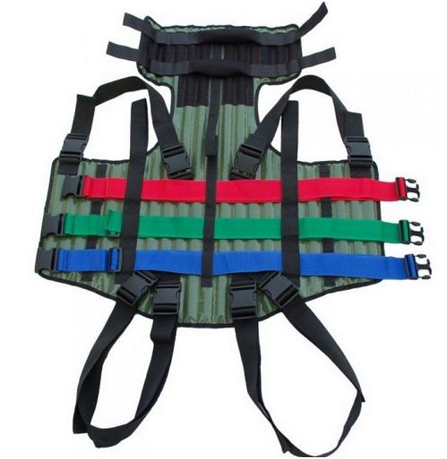 Kamizelka jest dostępna w zestawie wraz z: poduszką wypełniającą anatomiczne krzywizny ciała, pasami stabilizującymi głowę i pokrowcem.