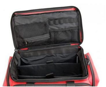 Zestaw umieszczono w torbie wykonanej z wykorzystaniem nowoczesnych rozwiązań materiałowych i konstrukcyjnych. Zastosowanie materiału nowej generacji, o podwyższonej odporności na przetarcia i zabrudzenia, w powiązaniu z rozwiązaniami konstrukcyjnymi (odpinane przegrody), umożliwia łatwą dezynfekcję oraz pranie.