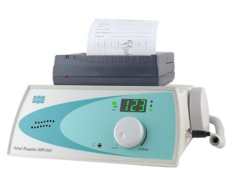 Detektor tętna płodu UDT-300 z zapisem służy do rutynowych badań akcji serca płodu przez ginekologów, położników i położne. Jest to wysokiej jakości i czułości zasilany z sieci 230V ultradźwiękowy detektor tętna płodu pełniący także funkcję kardiotokografu bez rejestracji skurczów macicy. Detektor tętna płodu jest wyposażony w drukarkę, która umożliwia zapis częstości uderzeń serca FHR i ruchów płodu na papierze. Można go używać od 10 tygodnia ciąży. Ma wbudowany układ ARC, który automatycznie optymalizuje odbiór sygnałów serca: zapewnia stałość poziomu dźwięku uderzeń serca, ogranicza zakłócenia kontaktowe i ułatwia odbiór słabych sygnałów w I trymestrze ciąży. Ponadto posiada trójkolorowy wskaźnik jakości przychodzących sygnałów, ułatwiający ustalenie miejsca umieszczenia głowicy i wizualną kontrolę.