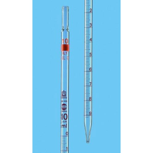 BLAUBRAND® ETERNA, szkło sodowo-wapniowe. Zgodne z normą DIN EN ISO 835. Oznaczenie DE-M. Typ 3 (zero na górze). Wzorcowane na wylew, wypływ całkowity (TD, Ex). Czas wypływu 5 sekund. Pipety oznaczone są numerem serii. Podziałka i napisy wykonane są brązową farbą dyfuzyjną ETERNA. Wszystkie pipety wielomiarowe BLAUBRAND® dostarczane są z numerem serii i jednym certyfikatem serii dołączonym do oryginalnego opakowania zbiorczego. Certyfikat indywidualny, certyfikat USP lub kalibracji DAkkS dostępny na życzenie.