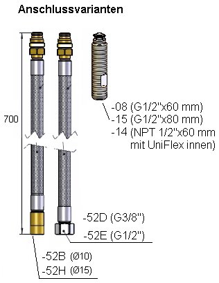 • Wąż 700 mm DN8 o średnicy 10Ø (-52B)