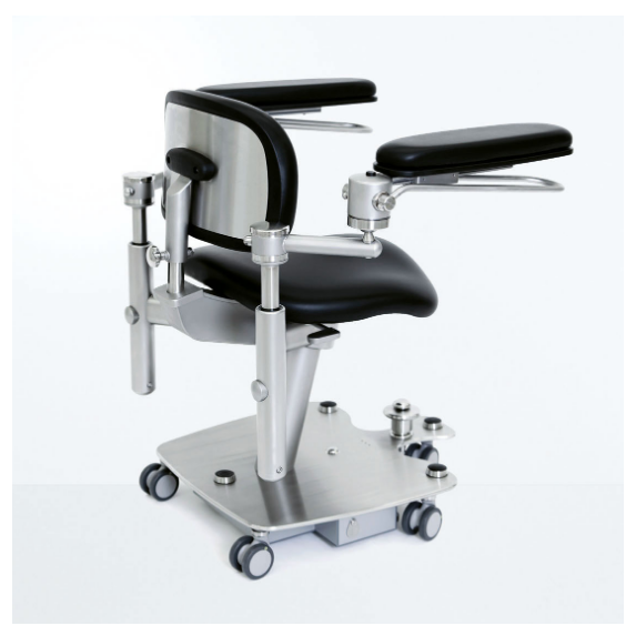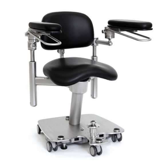 Solidna konstrukcja ze stali nierdzewnej, wygodne opatentowane siedzisko oraz system jezdny z możliwością blokady daje sprzęt niezbędny dla operatora pracującego w pozycji siedzącej, zwłaszcza w chirurgii okulistycznej.