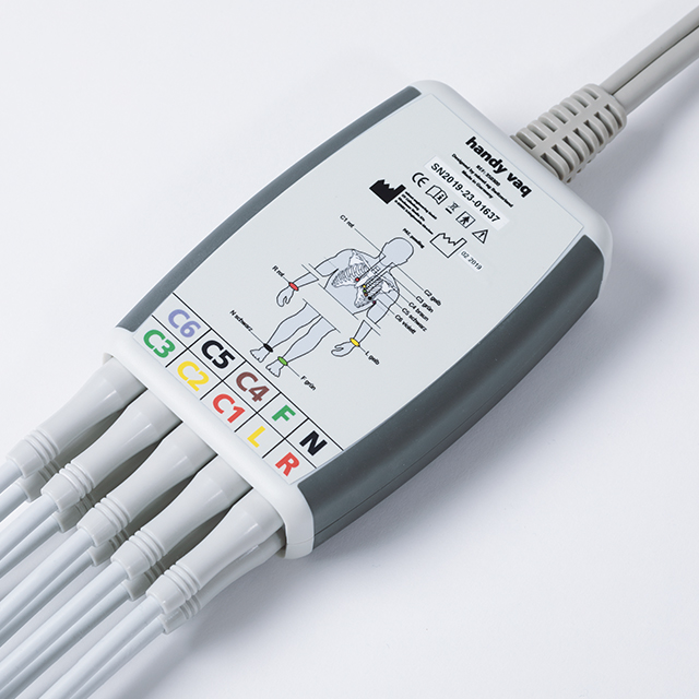 Prosta konstrukcja i zastosowanie trzech przycisków sterujących sprawia, że Handy Vaq jest wyjątkowo intuicyjny i łatwy w obsłudze. W razie potrzeby można szybko i sprawnie wymienić pojedyncze odprowadzenia. To przyjazne dla użytkownika, wydajne rozwiązanie zarówno do spoczynkowego jak i wysiłkowego EKG.