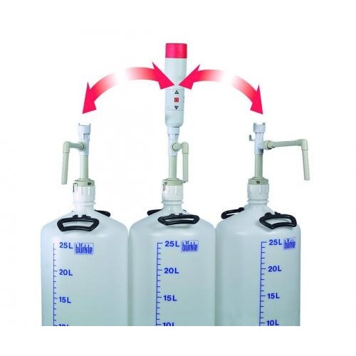 Pompy do beczek AccuOne i EnergyOne firmy Bürkle, z oryginalnym, hybrydowym systemem, zapewniają szybkość, elastyczność i pewność dozowania w każdej sytuacji. Pompy są wyposażone w dwa niezależnie zasilane systemy dozowania: AccuOne - zasilane wysokosprawnym akumulatorem, EnergyOne - zasilane poprzez kabel elektryczny, podłączany bezpośrednio do gniazdka. Innowacyjna nowa cecha: jednostki zasilające są wymienne! Zarówno akumulator, jak i jednostka zasilająca są wyposażone w zacisk, który ułatwia ich demontaż. Dzięki temu jednostki zasilające mogą być łatwo i szybko wymienione. Ponadto pompy AccuOne mogą być zasilane poprzez kabel elektryczny, a pompy EnergyOne poprzez akumulator. Posiadając zapasową baterię nie trzeba czekać na ładowanie akumulatora. Jednostka zasilająca może być w każdej chwili łatwo wymieniona. Dzięki temu możliwe jest stosowanie jednej jednostki zasilającej do kilku pomp. Pompy AccuOne i EnergyOne są odpowiednie do aplikacji, podczas których nawet bardzo niewielkie ilości płynu muszą być dodane do małych zbiorników z wąskim otworem wlewowym. Pompy wyposażone są w panel dotykowy, na którym znajduje się klawiatura pokryta folią zabezpieczającą przed kurzem i wodą. Za pomocą klawiatury można regulować prędkość przepływu ciągłą lub dokładną (od 0,4 L/min do 12 L/min). Dodatkowo jako opcja dostępny jest elastyczny wąż opróżniający o dł. 1,2 m z końcówkami z PVC, PP, V2A lub FKM. Lekkie i wydajne pompy wykonane są z wysokiej jakości materiałów: PP i Hastelloy C (stop niklu z molibdenem), w celu zapewnienia jak najlepszej odporności chemicznej. Dzięki zastosowaniu tych materiałów pompy idealnie nadają się do dozowania kwasów i zasad. Należy zwrócić uwagę na szczegółowe informacje dotyczące odporności chemicznej poszczególnych elementów pompy!