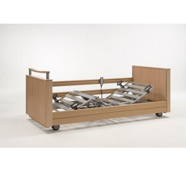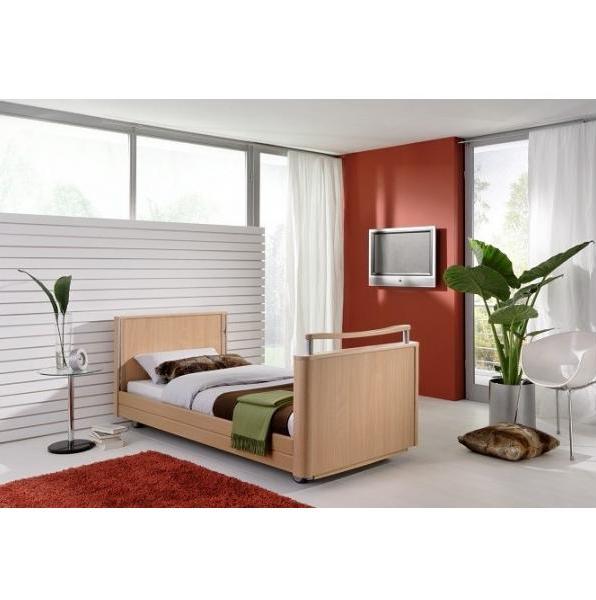 Solidna konstrukcja oraz zwiększony zakres regulacji wysokości leża (22-77cm) sprawiają, że łóżko jest idealne dla pacjentów o dużej masie. Innowacyjne i eleganckie obramowanie łóżka wykonano z drewna bukowego, a nogach łóżka przymocowano solidna i ergonomiczną poręcz w tej samej kolorystyce. Całość zasilana jest systemem firmy Linak.