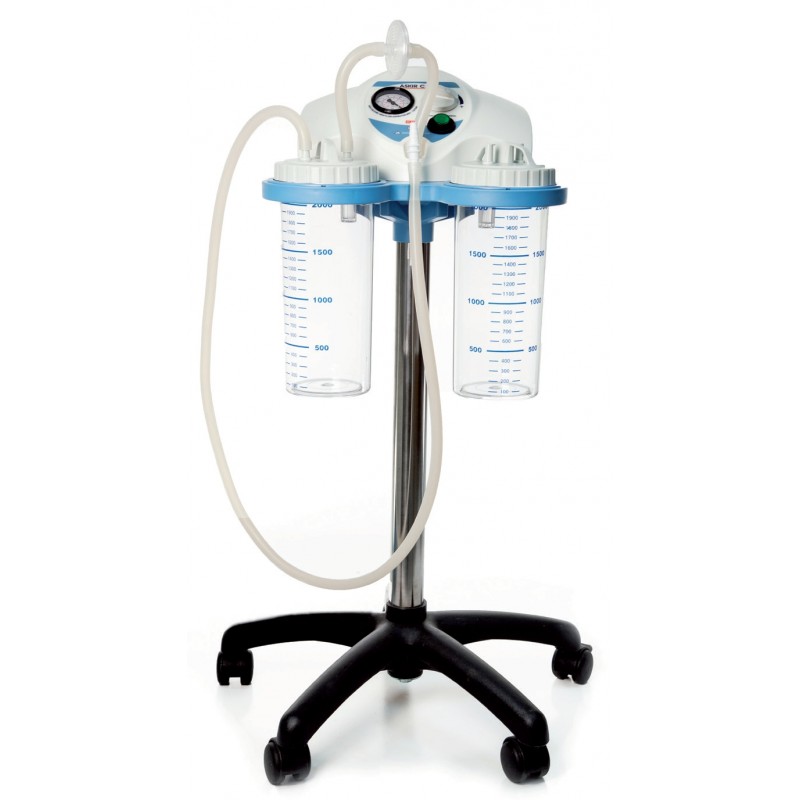 Ssak do odsysania płynów ustrojowych z jamy ustnej, nosa i tchawicy u dorosłych i dzieci. Przeznaczony do zastosowań profesjonalnych. Urządzenie wyposażone w dwa zbiorniki z poliwęglanu oraz manometr i regulator podciśnienia (bar i kPa). Całość umieszczona na stojaku z pięcioma kółkami. Obudowa wykonana z wysokiej jakości tworzywa odpornego na wysoką temperaturę i uszkodzenia mechaniczne.