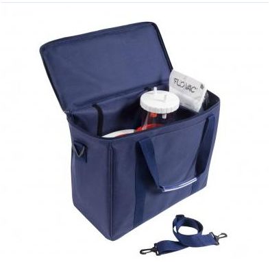 Wykonana z mocnego i trwałego materiału, zapinana na suwak. W środku wyjmowana przegroda - mocowana na rzep w różnych pozycjach. W torbie poza ssakiem zmieszczą się np. 2 butle 2L, wkłady jednorazowe lub inne akcesoria.