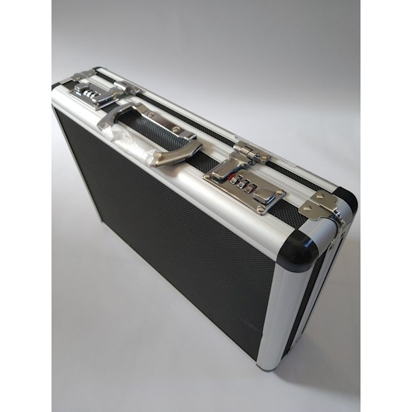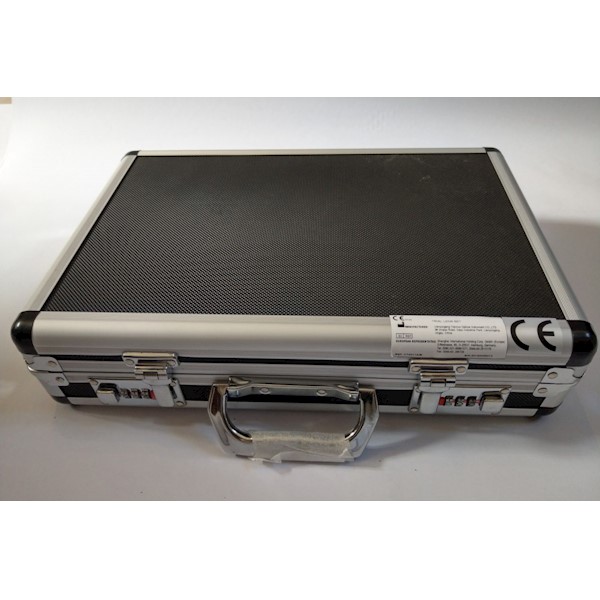 Zestaw szkieł probierczych w eleganckiej walizce z możliwością wyjmowania drewnianej wyściełanej kasetki.