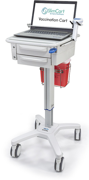 Wózek komputerowy – mobilna stacja medyczna SlimCart jest przystosowany do umieszczenia laptopa, tabletu oraz małego monitora medycznego w celu wykorzystania w oddziałach szpitalnych oraz na bloku operacyjnym. Posiada lekką i ergonomiczną konstrukcję, która pozwala na konfigurowanie wyposażenia spełniającego określone wymagania. Model można dostosować do potrzeb użytkownika, gwarantując bezpiecznie przechowywanie laptopa, tabletu, czy małego monitora medycznego oraz wygodne wprowadzanie danych. Opatentowany system regulacji wysokości z łatwością dostosowuje blat roboczy i ekran do odpowiedniej wysokości, niezależnie od wykonywanej czynności. Wózek SlimCart promuje prostotę i łatwość obsługi, aby pomóc w obniżaniu kosztów unowocześnienia systemów zarządzania w opiece zdrowotnej.