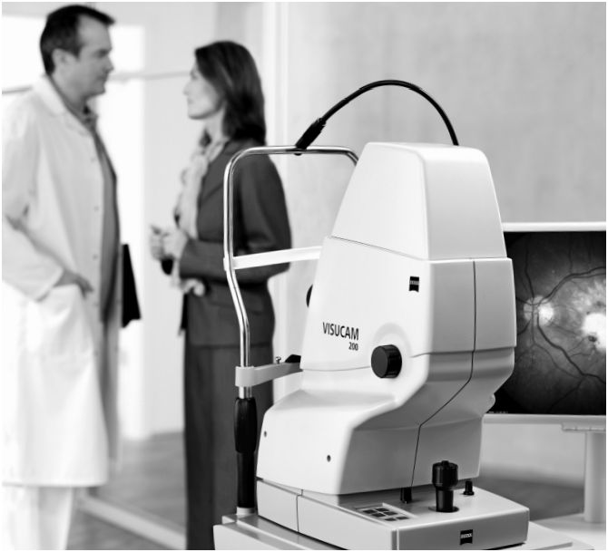 VISUCAM 200 wyposażone legendarne optyką Carl Zeissa typu non mydriatyk co pozwala fotografować tak małe źrenice jak 3.3mm.