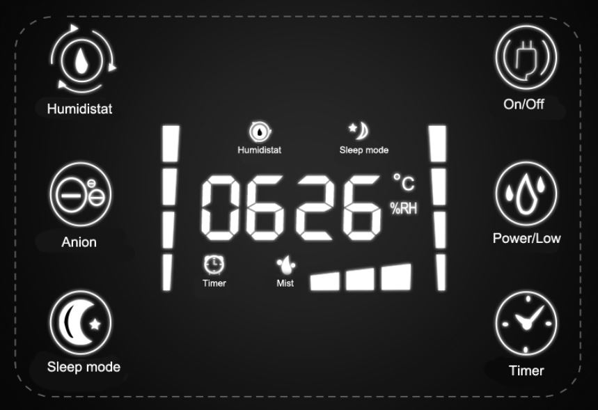 5. Włącz nawilżacz za pomocą przycisku znajdującego się w przednim panelu.