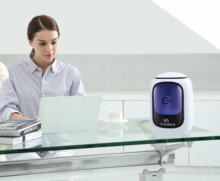 Wysuszone śluzówki, łzawiące oczy, problemy ze skórą, gardłem i drogami oddechowymi to podstawowe dolegliwości mogące być wynikiem przebywania w pomieszczeniach, w których poziom wilgotności nie przekracza 30%. Nasilać je może nadmierne promieniowanie elektrostatyczne z komputera i monitora.Aby zapobiec tym przypadłościom proponujemy ultradźwiękowy nawilżacz powietrza.Nawilżacz ten działa na zasadzie fal ultradźwiękowych, zmienia czystą wodę w chłodną i orzeźwiającą parę.Przy wytwarzaniu pary wodnej powstają bardzo duże ilości anionów (jonów ujemnych), które są bardzo pomocne przy wytrącaniu pyłków, kurzu i innych zanieczyszczeń powietrza gromadzących się w pomieszczeniu.Urządzenie o niewielkim zużyciu energii elektrycznej, całkowicie bezpieczne w użyciu.