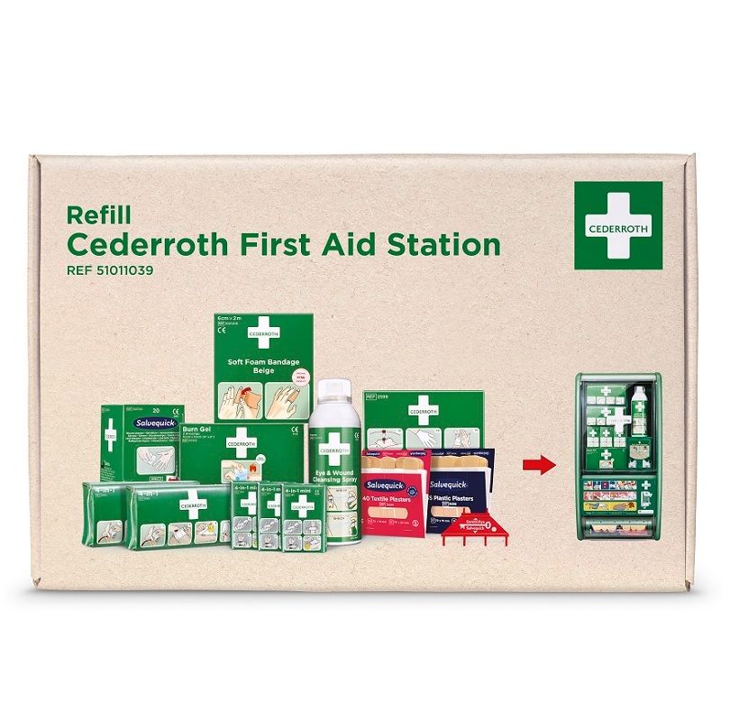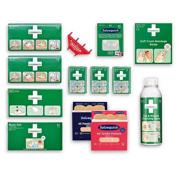 Zestaw, który zawiera uzupełnienie do: Apteczka ścienna Cederroth First Aid Station REF 51011026.