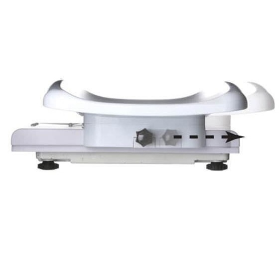 Elektroniczna waga klasy III przeznaczona do ważenia leżących niemowląt i dzieci w gabinetach lekarskich i placówkach służby zdrowia. Można ją z łatwością przekształcić z wagi niemowlęcej na podłogową dla dzieci o wadze do 20 kg. Wsuwana i blokowana (poprzez precyzyjne dokręcenie) szalka wykonana z wysokiej jakości tworzywa sztucznego jest stabilnie połączona z platformą, co zapewnia bezpieczne ważenie niemowlęcia.