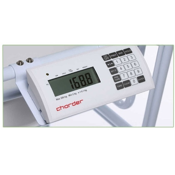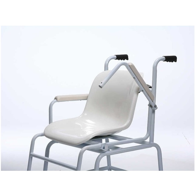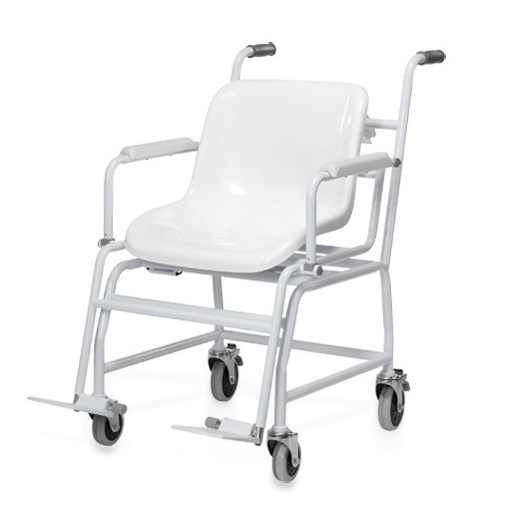 Elektroniczna waga do ważenia w pozycji siedzącej przeznaczona do użytku w służbie zdrowia, zalegalizowana do celów medycznych wg klasy III. Wygodny transport po placówce dzięki stabilnym rączkom i 4 podgumowanym, łożyskowanym łatwo obracającym się kółkom. 4 kółka z hamulcami. Podłokietniki składane. Wyświetlacz LCD. Siedzisko wykonane z wytrzymałego plastiku, który można dezynfekować. Pewna pozycja siedząca dzięki hamulcom kółek oraz odchylanym podłokietnikom i podnóżkom. Waga medyczna krzesełkowa Charder MS5410 spełnia wymagania Dyrektywy 90/384/EWG o wagach nieautomatycznych podstawowe wymagania normy europejskiej DIN EN 45501 dyrektywy 93/42/EWG o wyrobach medycznych.