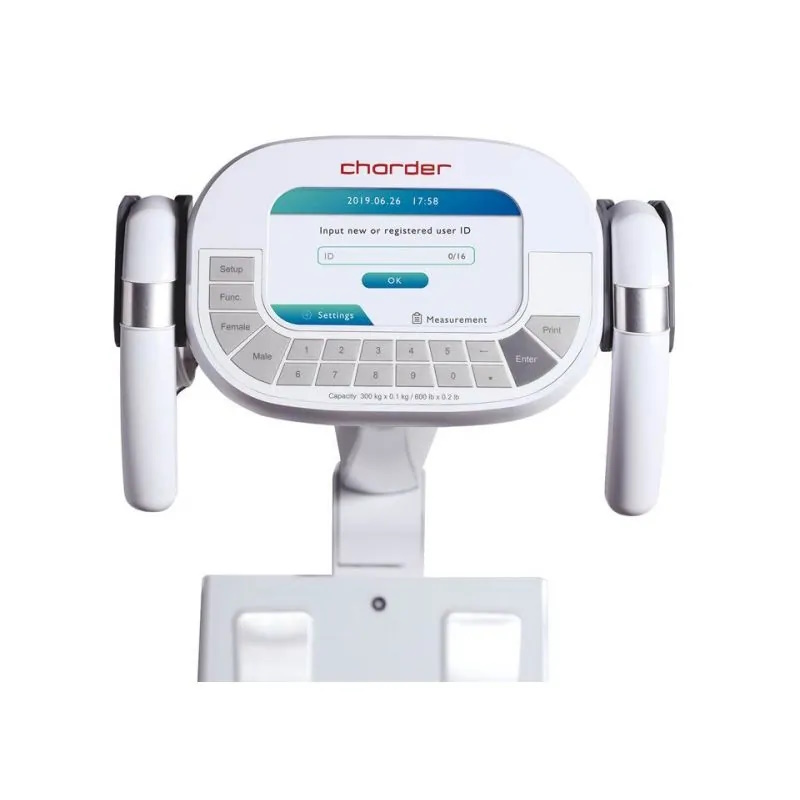 Profesjonalny medyczny analizator składu ciała Charder MA601 klasy klinicznej dostarcza wartości pomiarowe i dane, które są wynikiem badania z użyciem wielu częstotliwości. Oprogramowanie i podłączenie do komputera bezpłatne.