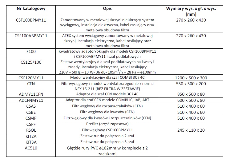 Akcesoria opcjonalnie: