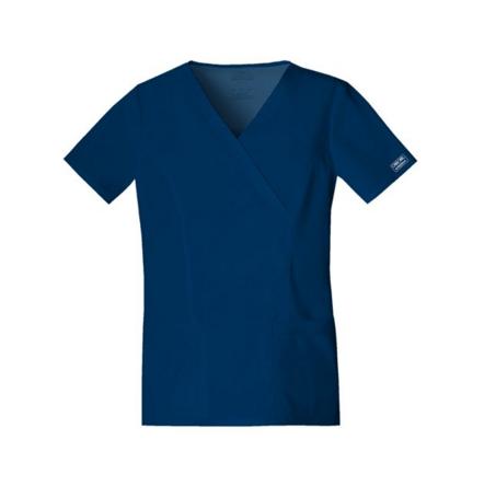 Damska bluza medyczna linii Core Stretch z dekoldem typu V-neck. Posiada cztery przednie, pojemne kieszenie, w tym dzieloną kieszeń na telefon i przybory. Wykończona podwójnym szwem.