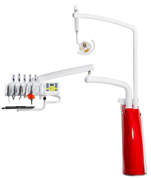 To co odróżnia go od wszystkich pozostałych to fakt, że występuje bez fotela. Jeżeli nasz dotychczasowy fotel może jeszcze długo pracować, bądź jest tak wygodny, że nie chcemy go wymieniać na żaden inny to jest to rozwiązanie dla nas. Unit musimy przytwierdzić na stałe do podłoża lub w przypadku barku możliwości ingerencji w podłogę zamontować na specjalnej płycie. Wszystkie przyłącza mediów są ukryte w podstawie kolumnowego bloku. Opcjonalnie można zamontować sekcję przyłączy w sąsiedztwie unitu. W kolumnie spluwaczki pomimo wizualnie smukłego kształtu jesteśmy w stanie zmieści kompresor marki ECOM.