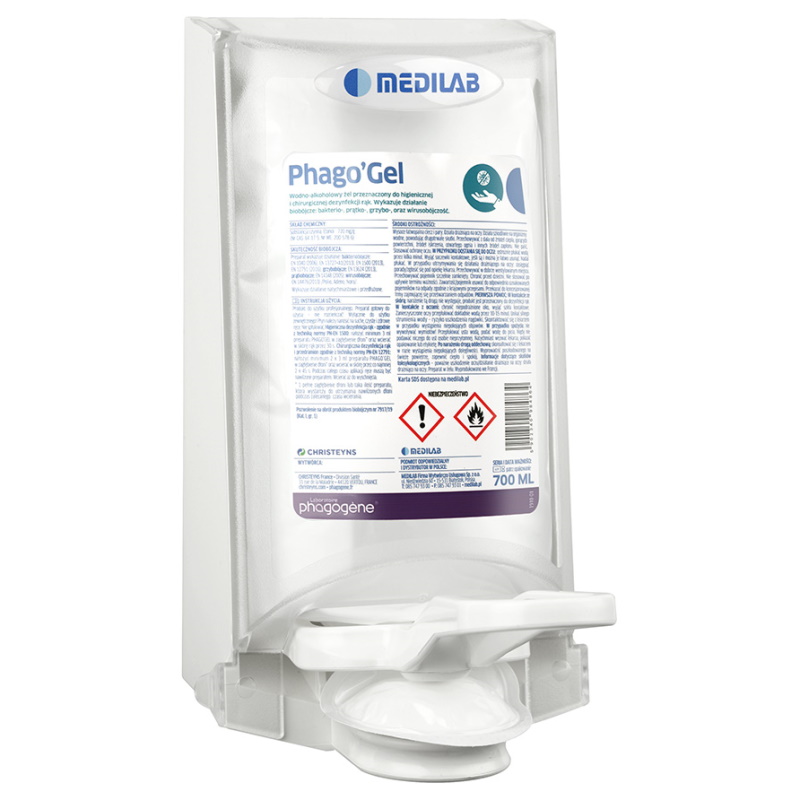 Wodno-alkoholowy preparat w postaci żelu do higienicznej i chirurgicznej dezynfekcji rąk metodą wcierania.