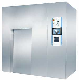 - Komora sterylizacyjna prostopadłościenna, powierzchnie ścian komory gładkie, dokładność szlifu Ra<0,2 µm, bez przewężeń światła komory oraz stelaży dla wózków wsadowych.