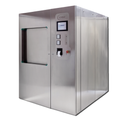 Główną część urządzenia stanowi prostopadłościenna komora sterylizacyjna, wykonana ze stali nierdzewnej AISI 316L WR 1.4404 (AISI 316Ti jako opcja) polerowanej do uzyskania efektu lustra, odporna na korozję oraz warunki termomechaniczne. Komora prostopadłościenna, naroża zaokrąglone, powierzchnia wewnętrzna szlifowana/polerowana elektromechanicznie Ra 0,1 µm. Komora jest spawana zgodnie z najbardziej zaawansowanymi, certyfikowanymi technikami oraz wytworzona zgodnie z Europejską Dyrektywą Ciśnieniową (PED) 97/23/EEC i opatrzona odpowiednim oznakowaniem CE.
