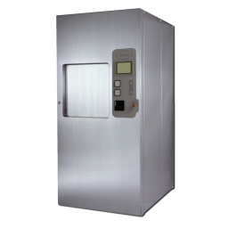 Urządzenie jest wyposażone w system próżniowy składający się z wysokowydajnej, jednostopniowej pompy próżniowej z pierścieniem cieczowym, która zapewnia szybkie usuwanie powietrza podczas etapu wstępnego próżni i lepsze suszenie podczas etapu po próżni. Pompa jest zainstalowana na specjalnych uchwytach antywibracyjnych, które zapobiegają hałasowi i wibracjom na konstrukcji urządzenia. Poprzez użycie impulsów pary / próżni podczas etapu wstępnego próżni, całe powietrze jest usuwane, aby zapewnić doskonałą przenikalność pary wodnej wewnątrz wsadu. Gorące opary z urządzenia są chłodzone poprzez rurowo-gniazdowy wymiennik ciepła przed wejściem do pompy próżniowej. System chłodzenia, zasilany przez wodę z sieci wodociągowej chroni pompę próżniową przed gorącymi oparami z komory.