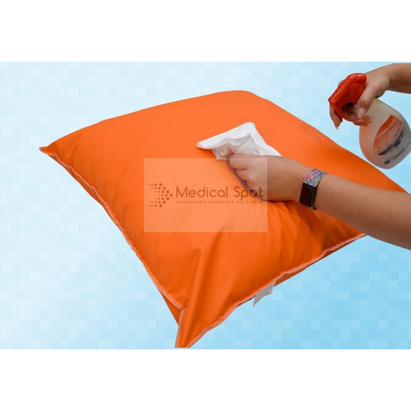 Poduszka z zewnątrz wykonana jest z wodoodpornego, bakteriostatycznego poliestru pokrytego poliuretanem z powłoką antybakteryjną, który chroni przed rozmnażaniem się drobnoustrojów na powierzchni poduszki, eliminując ryzyko infekcji czy reakcji alergicznych. Powłoka ta pomaga zwalczać zakażenia szpitalne, zapobiegając przedostawaniu się zanieczyszczeń do wypełnienia. Utrzymuje idealną higienę.Może być stosowana jako element profilaktyczny w walce z infekcjami szpitalnymi oraz jako środek ochrony osobistej przed kontaktami z patogenami przenoszonymi drogą kropelkową.