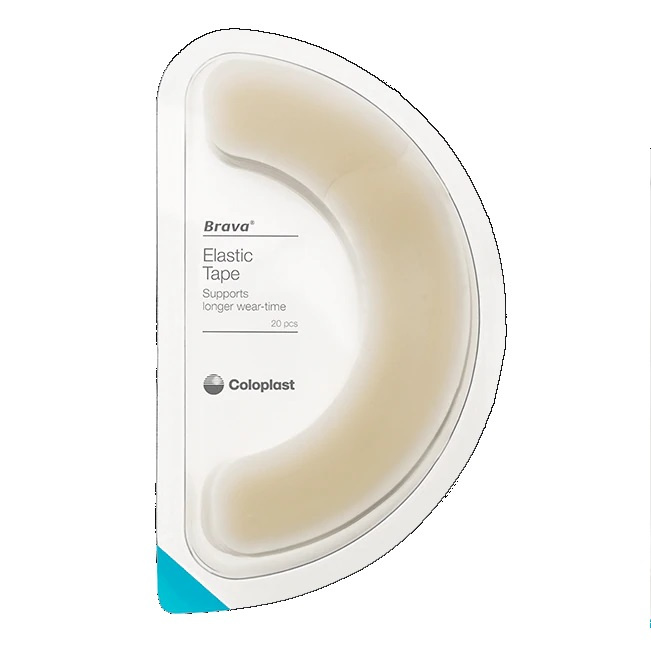 - Brava pierścień uszczelniający w paskach poprawia pozycję płytki stomijnej, a dzięki swojej elastyczności dopasowuje się do kształtu ciała i jego ruchu.