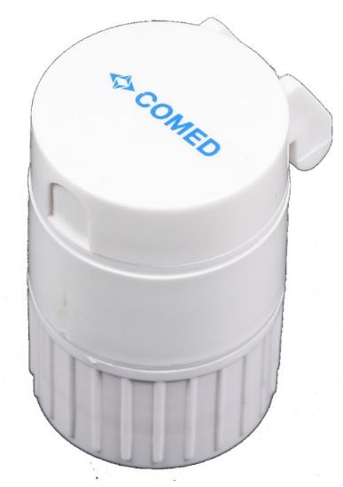 Gilotyna kruszarka Comed do leków to przydatne urządzenie w każdym gabinecie pielęgniarskim i lekarskim zarówno w szkołach, na oddziałach jak i w klinikach. Wyposażona jest w potrójny pojemnik na leki. Kruszarka znajduje się w dolnej częsci obudowy pod nakrętką. Gilotyna można dzielić tabletki o wielkości od 5 do 18 mm.