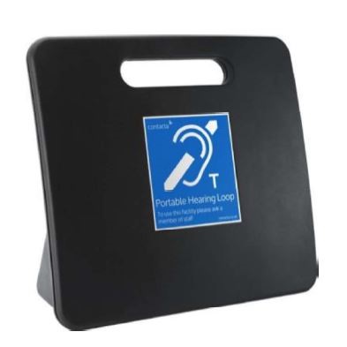 Przenośna pętla indukcyjna to uniwersalne rozwiązanie zapewniające mobilną pomoc dla klientów w miejscach, których nie można umieścić stałej pętli. Urządzenie może być przenoszone pomiędzy lokalizacjami w zależności od potrzeb i używane do rozmów pomiędzy dwoma osobami.