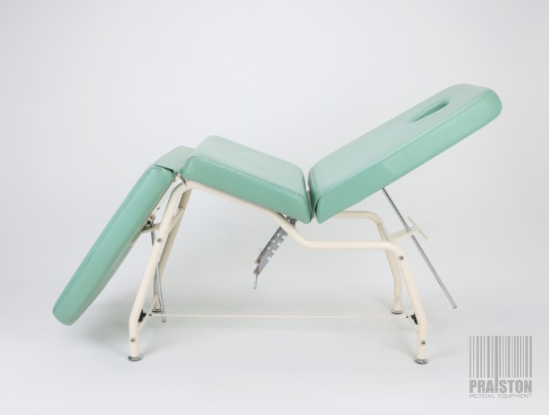- Tapicerka z atestem medycznym w kolorze zielonym z widocznymi śladami użytkowania (możliwość wymiany tapicerki na nową, z naszego wzornika kolorów za dodatkową opłatą),
