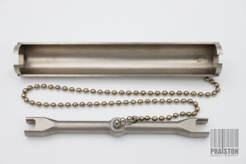 - Autoklawowalny klucz do montażu na łańcuszku, wraz z podstawą,