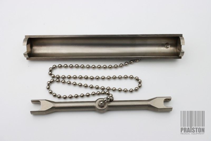 - Autoklawowalny klucz do montażu na łańcuszku, wraz z podstawą,